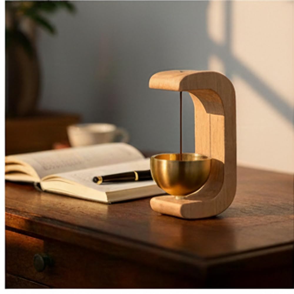 Meditation Desktop Bell, Wooden Stand with Brass Chime Ball, Japanese-Style Mindfulness Tool for Home and Office