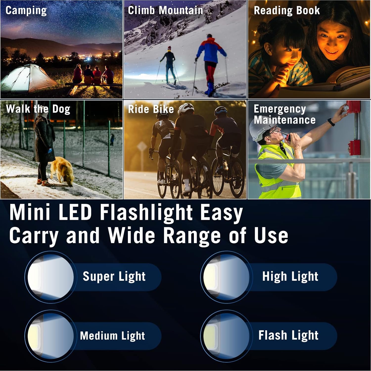 - 4 Modes: Our flashlights one-button control, four lighting modes (super bright, strong light, medium light, flash), up to 800 lumens; LED lights with COB technology, high brightness and concentrated, can be used as emergency lights or working lamp.
